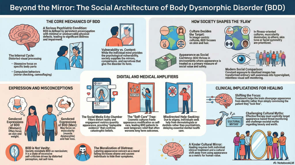 Society does not cause Body Dysmorphic Disorder—but it decides how loudly it speaks.